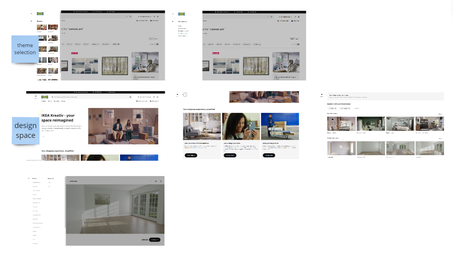 I ran a lightning demo session to find inspiration from designs that answer similar questions. The companies that I studied include IKEA, Farfetch, Wayfair, and Pinterest.
